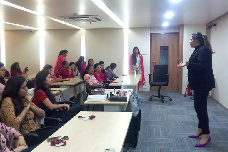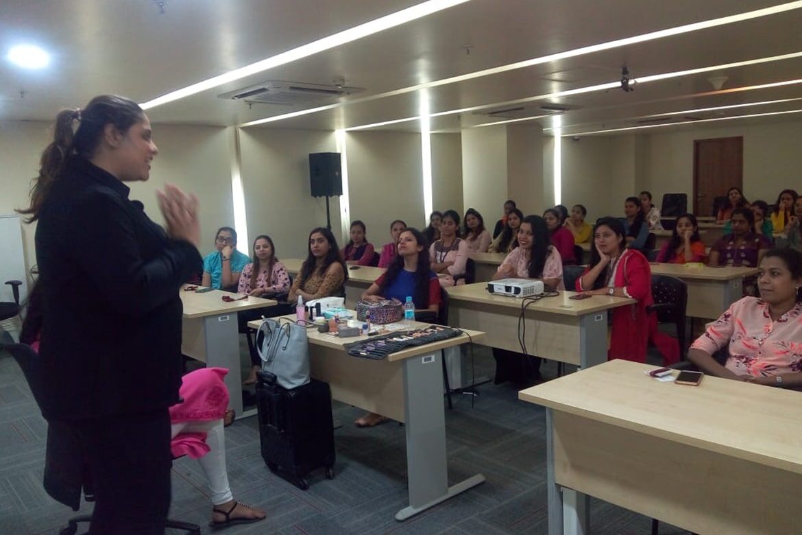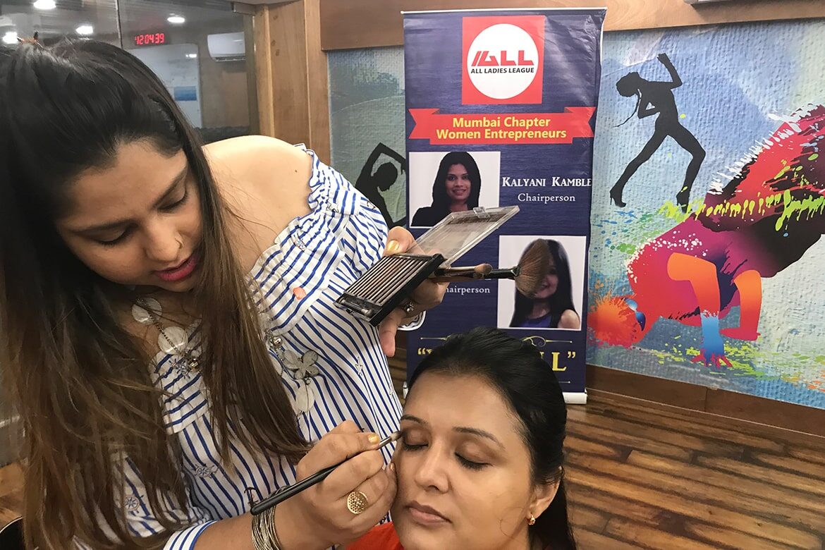 - Personal Makeup Workshop – This certified workshop is suitable for individuals and for women groups. You can up your makeup game by enrolling for the personal makeup workshop personalised as per your makeup needs. If your ladies kitty group is looking for some interesting activity to do together, then book a special makeup workshop to enjoy with your ladies. We have catered workshops for Just AmongGurlz women group, Leo club of Vidya Vihar, ALL Mumbai Women entrepreneur group amongst others.