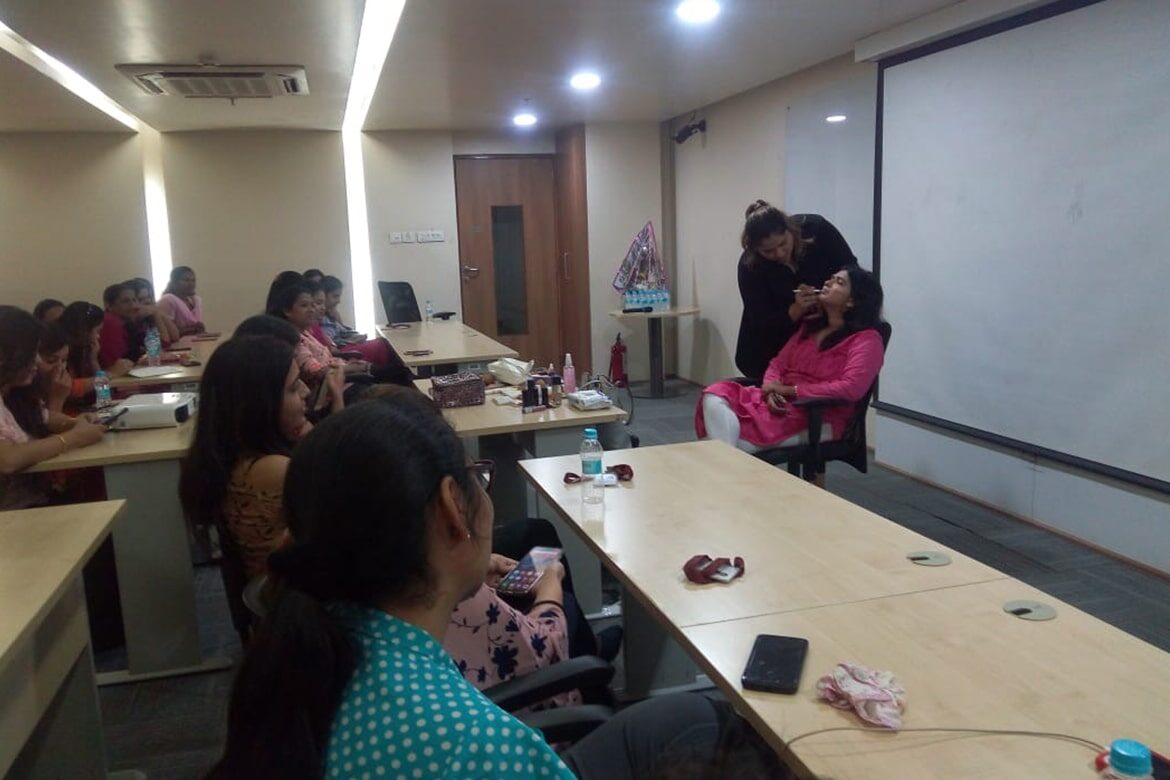 - Corporate Makeup Workshop – This workshop is for our friends who want to conquer the corporate world, and while you are at it, why not do it with some style and elegance! The workshop can be conducted for corporate companies looking for a valuable and interesting workshop for their women employess. The Fun Fridays would get even more fun with us.Our clients include Axis Securities, Taj Wellington Mews, Innov8, CMSS Pvt Ltd and others.